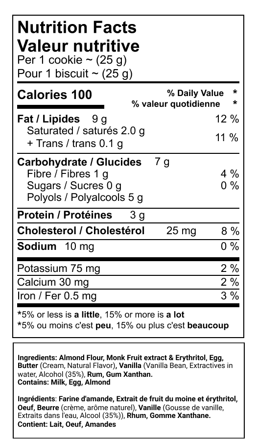 Almond Flour, Monk Fruit & Erythrithol, Butter, Egg, Rum, Pure Vanilla Extract